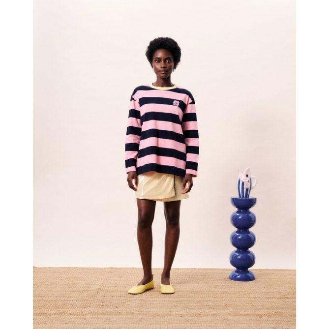 Camiseta con rayas anchas y cuello redondo en contraste.