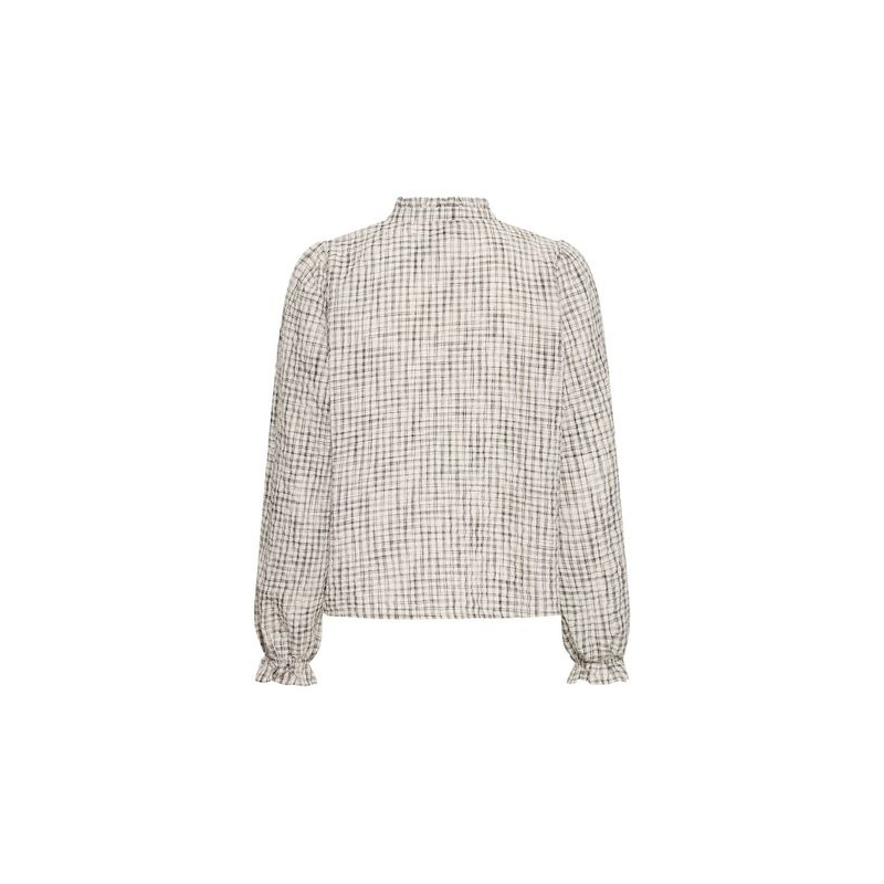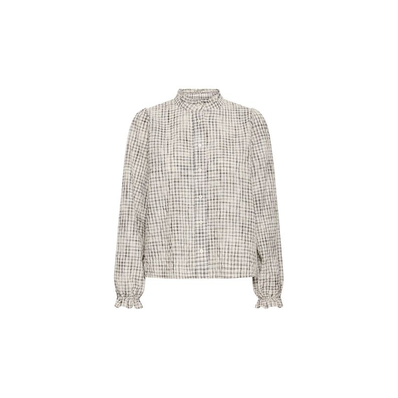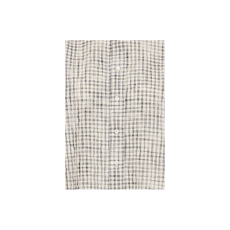 Camisa de manga larga y cuello chimenea. Abotonada en el delantero.