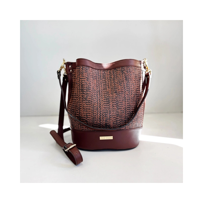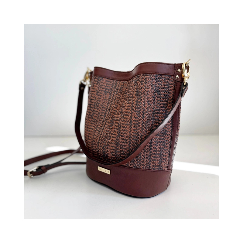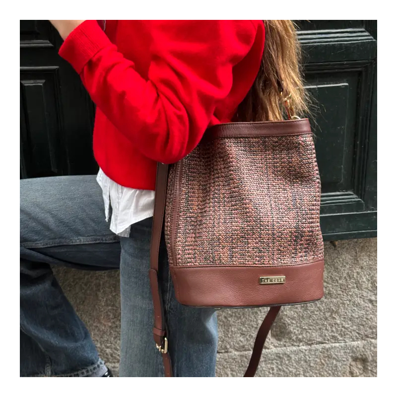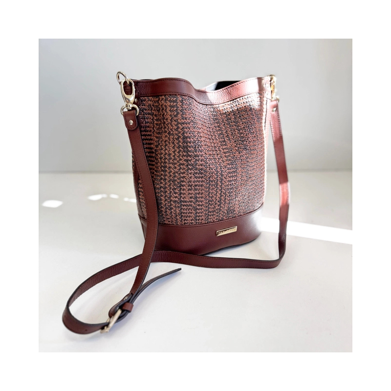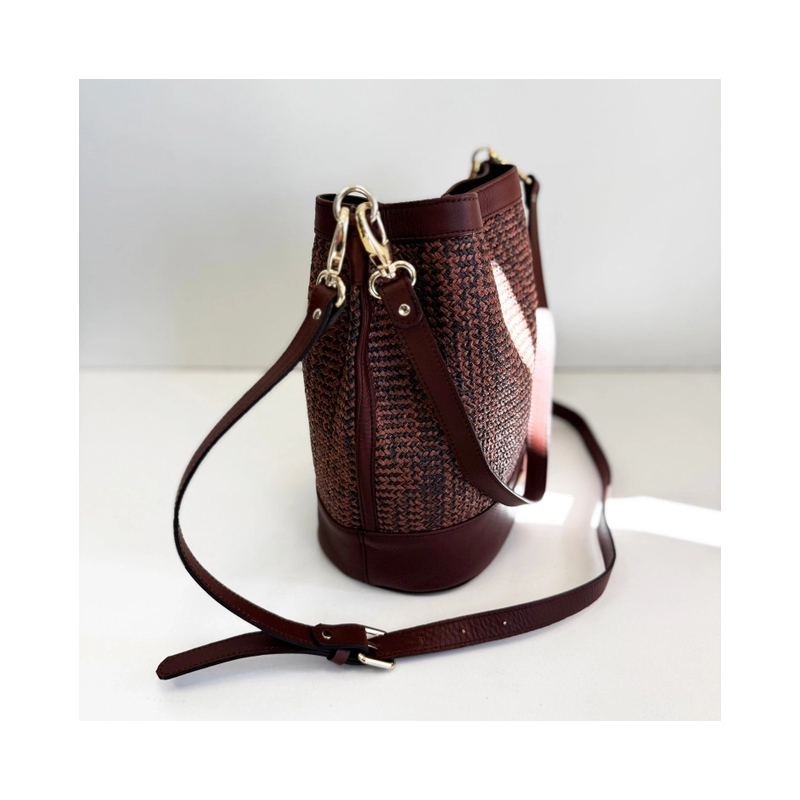 -Medidas: 23 cm x 13 cm x 28 cm - Composición 100% piel de vacuno y rafia orgánica